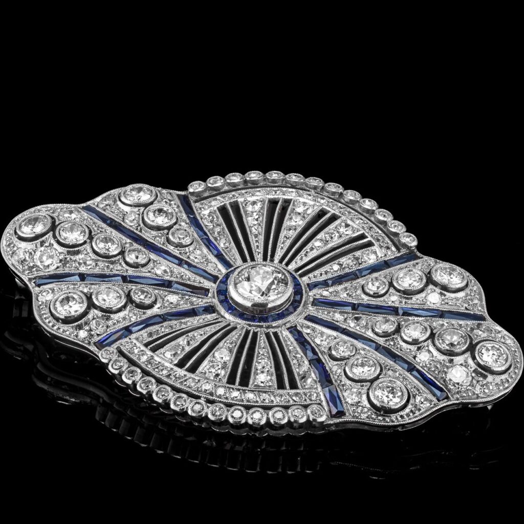 Dawna broszka Art Deco z szafirami i diamentami